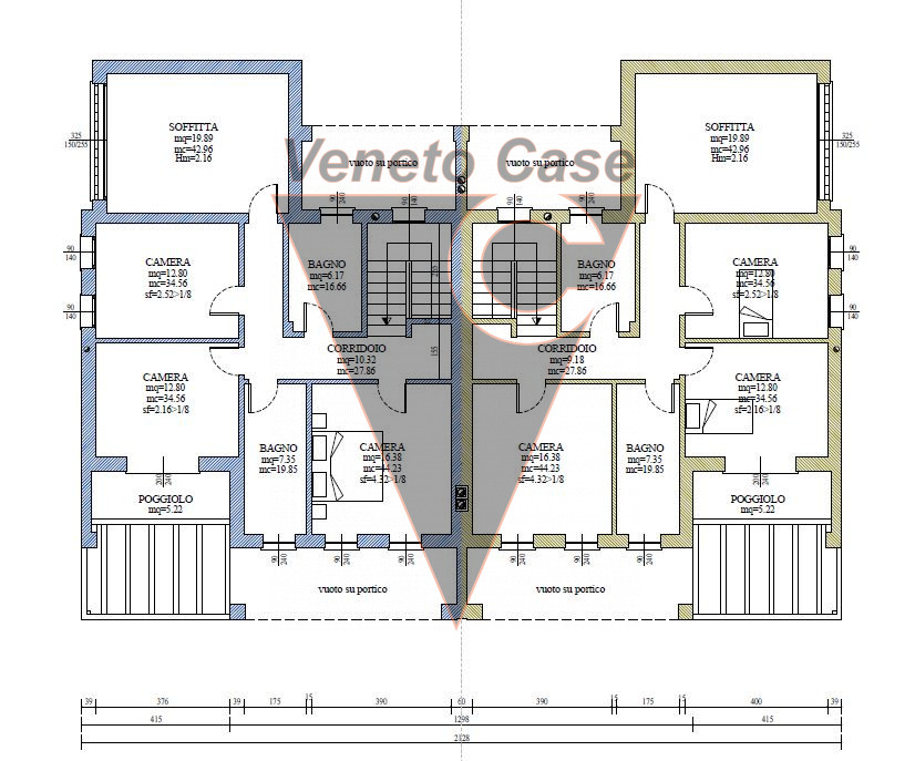 Salendo le scale troviamo tre camere da letto di cui una servita da poggiolo, due bagni ed un’ ulteriore stanza da adibire a studio o quarta camera.