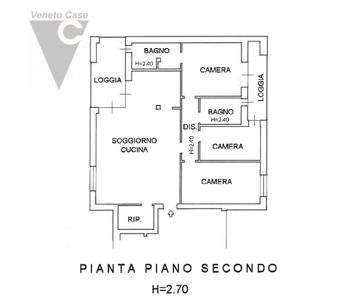 TRE CAMERE DA LETTO a scalare, una ampia camera padronale, una spaziosa doppia, entrambe con accesso diretto ad un’altra loggia e una singola,