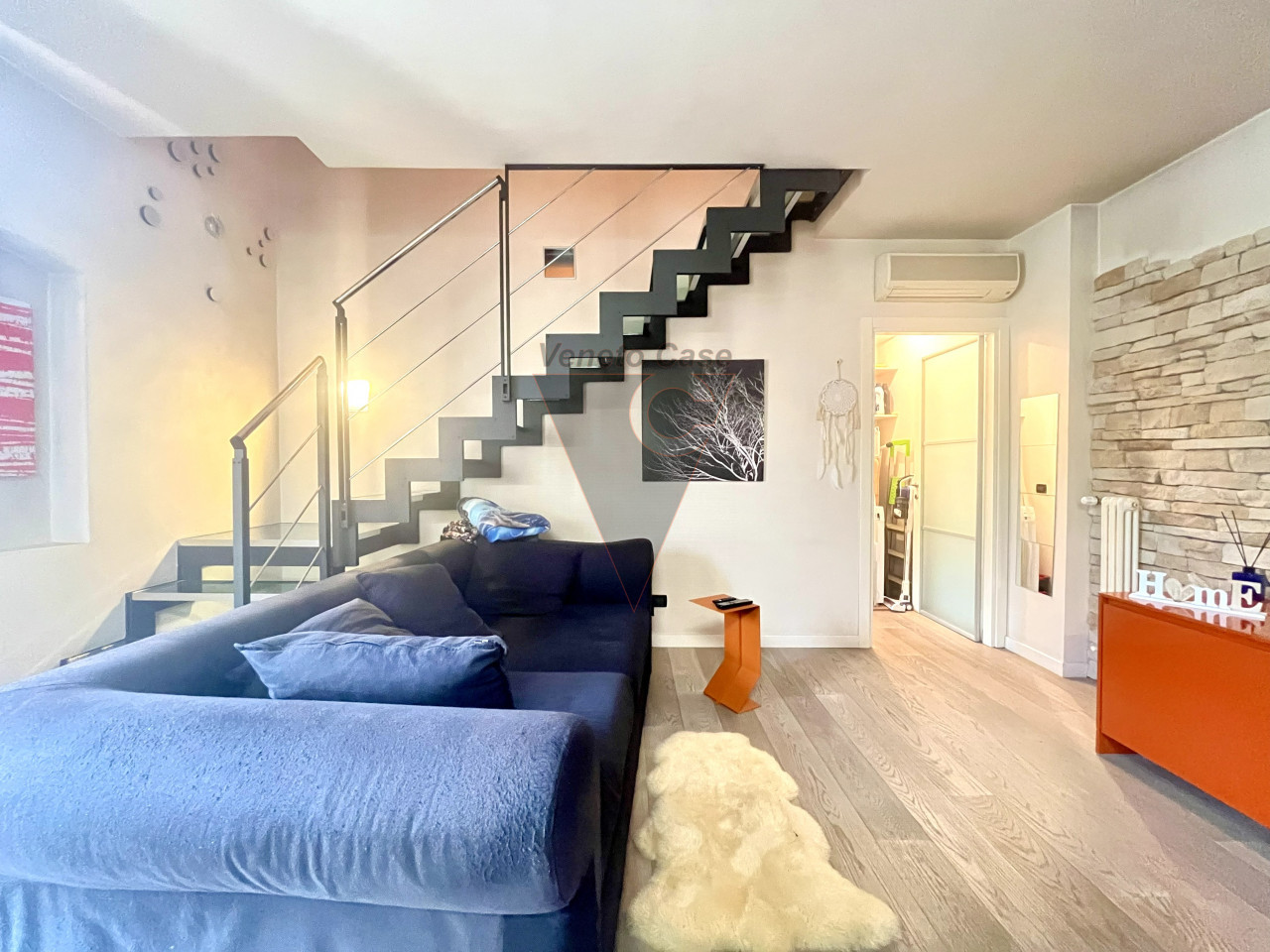 La soluzione si sviluppa al secondo e ultimo piano ed è composta dalla zona giorno open space con angolo cottura e ampia porta finestra che ci conduce al poggiolo.