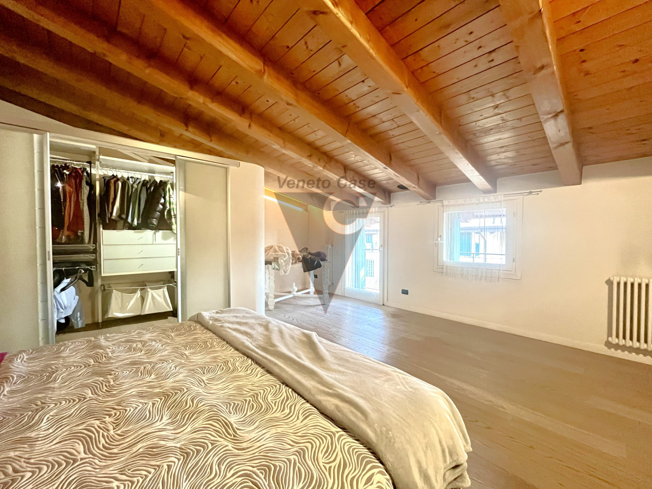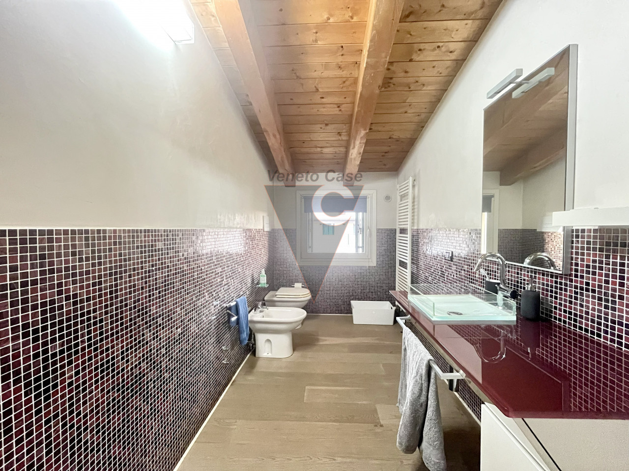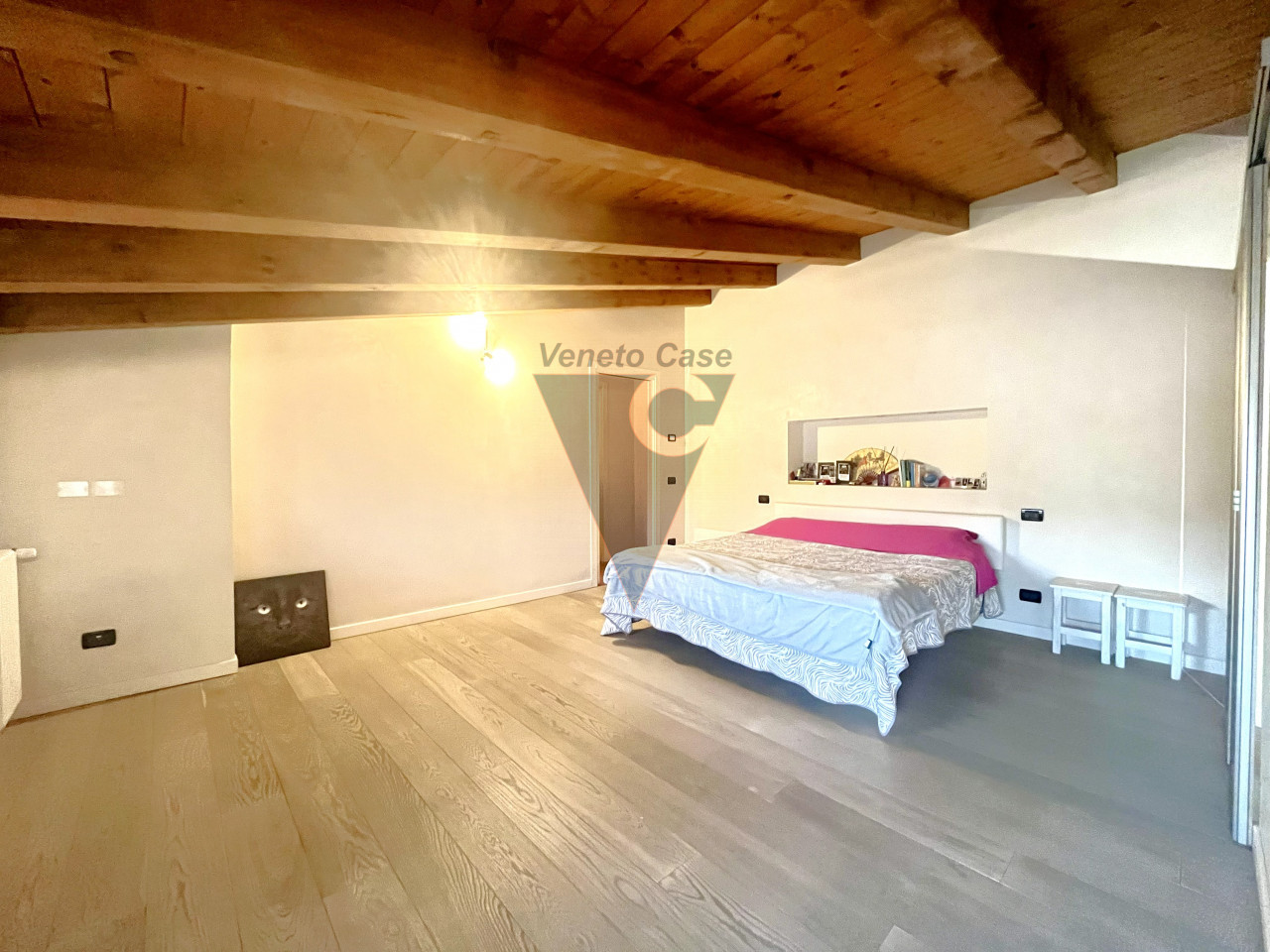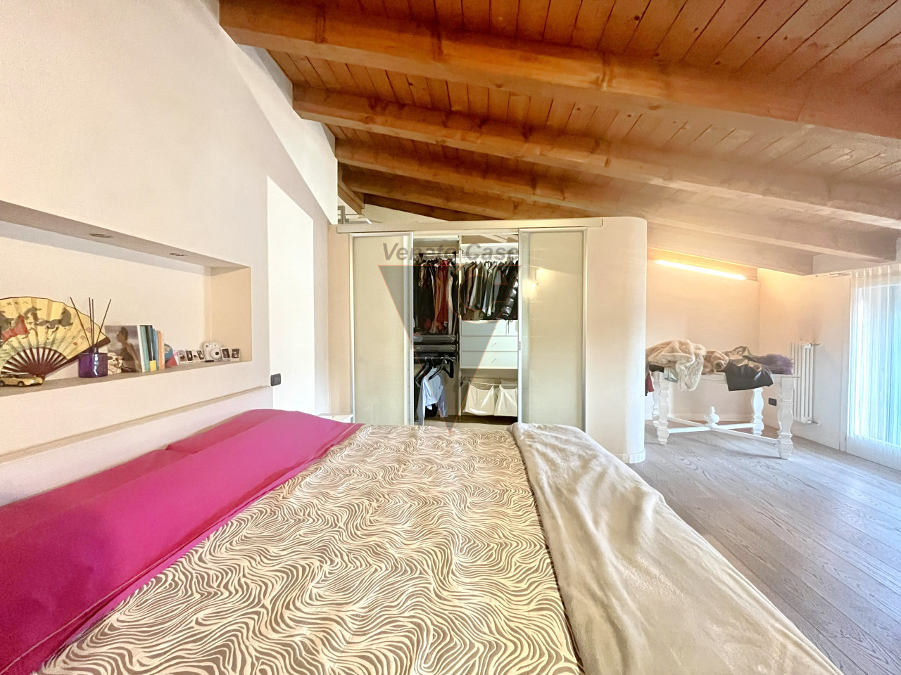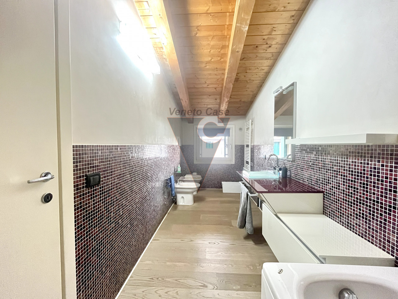 Dalla zona giorno accediamo al piano mansardato dove troviamo un’ampia camera matrimoniale con cabina armadio e il secondo bagno finestrato servito da vasca da bagno.