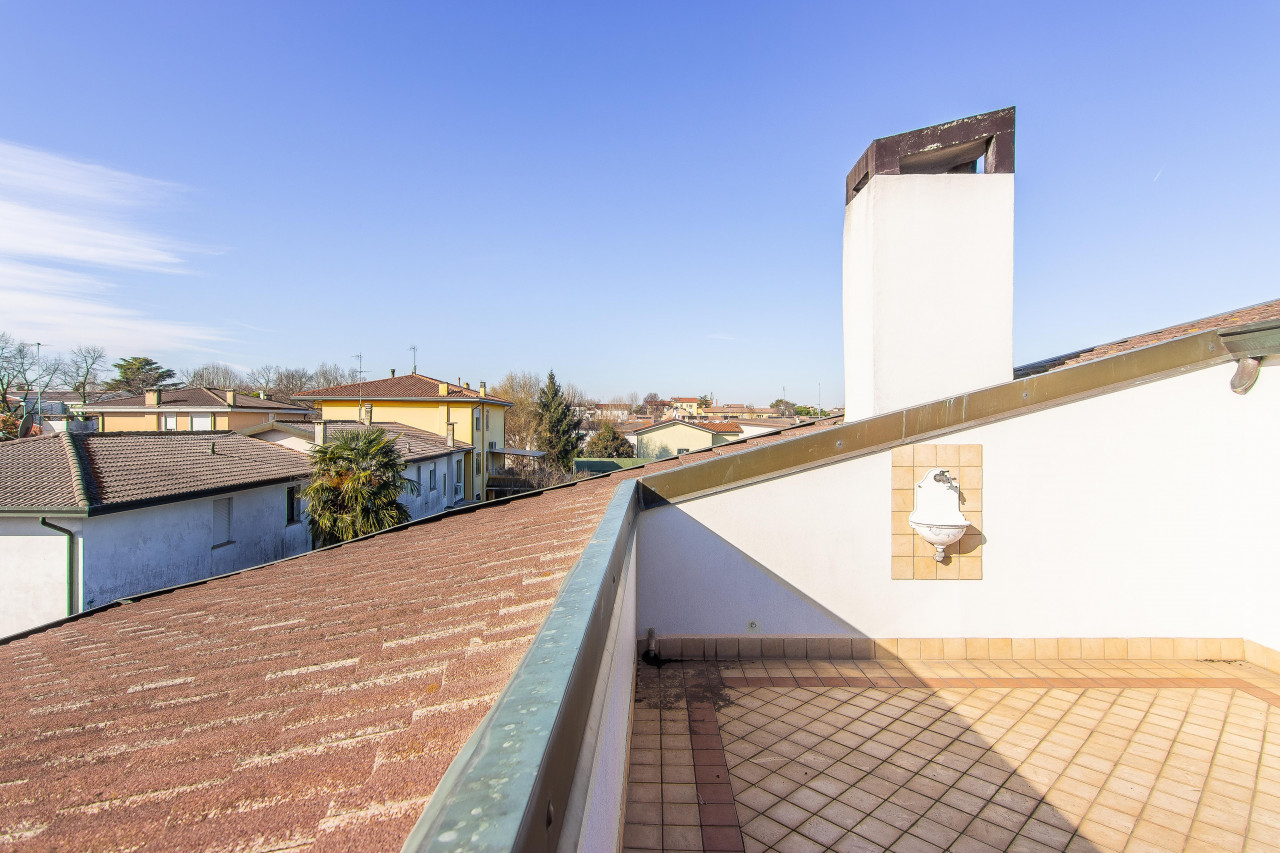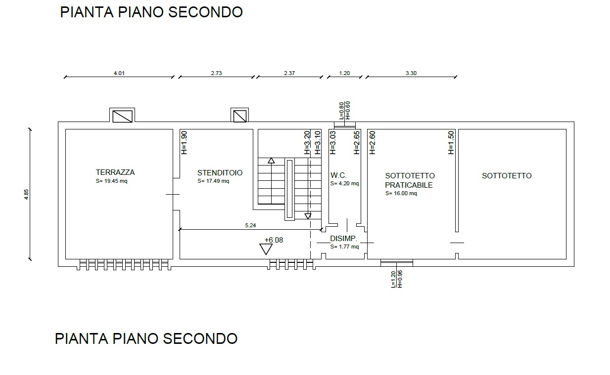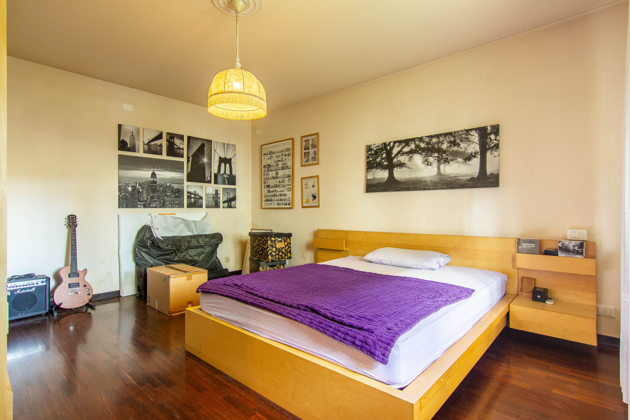 Al secondo e ultimo piano, troviamo uno studio, un bagno, una camera matrimoniale ed un magnifico terrazzo solarium.