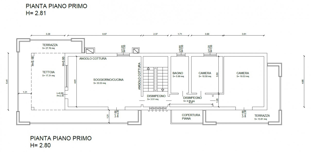 Al piano terra troviamo un mini appartamento completamente indipendente, una taverna ed un garage doppio in larghezza. Salendo le scale arriviamo alla seconda unità, sviluppata su due piani, al primo piano abbiamo una zona giorno open space con accesso ad un ampio terrazzo coperto, ideale per le vostre cene estive, un bagno finestrato e due camere.