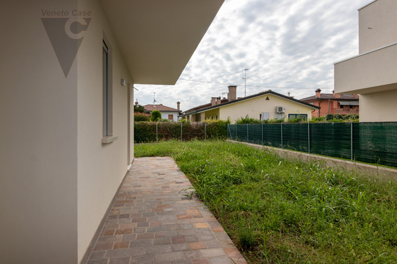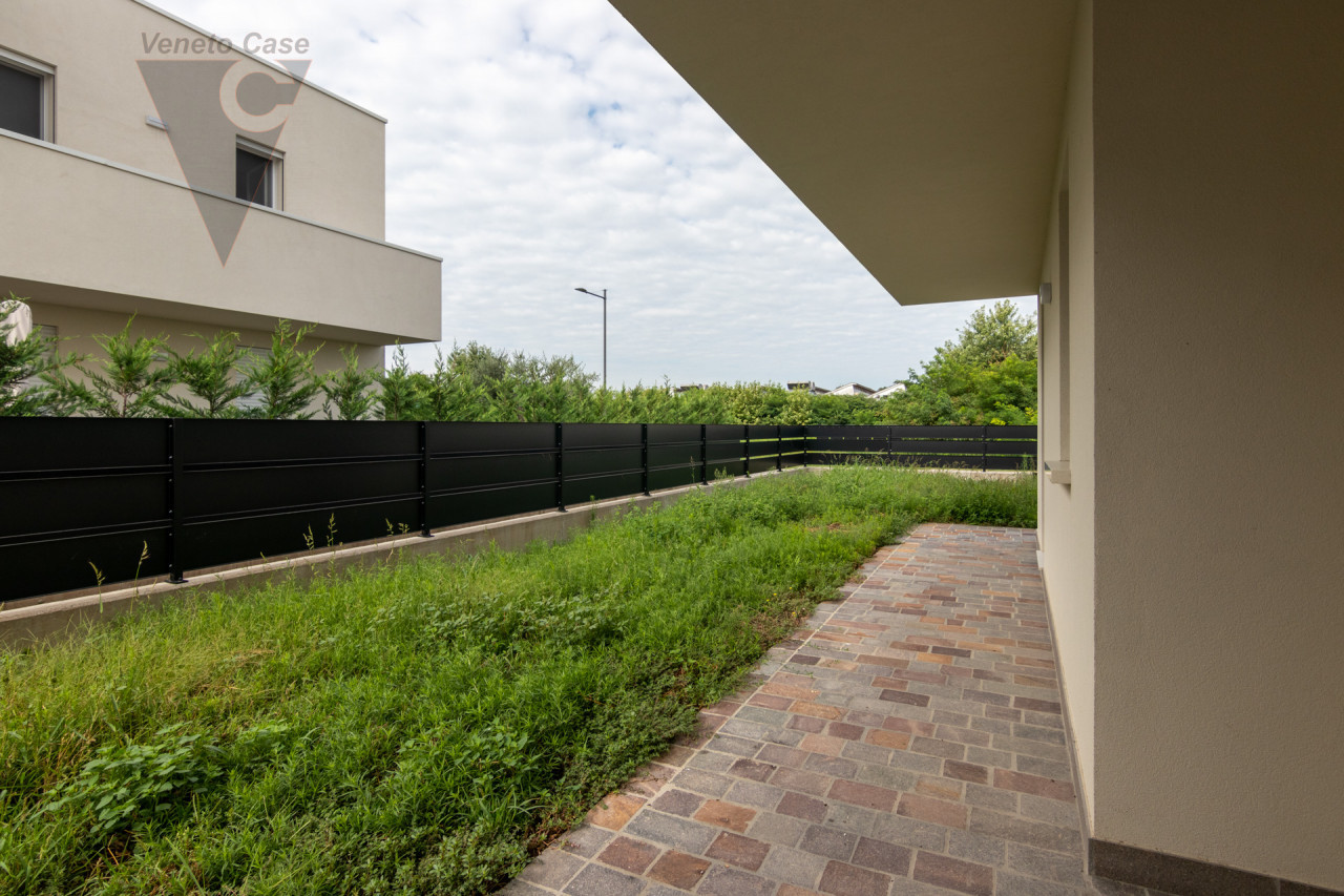 Su nuovo e centralissimo quartiere residenziale a Legnaro, comodo a tutti i servizi e dotato di numerosi parcheggi antistanti, proponiamo in vendita ultimi nuovi appartamenti con giardino su palazzina di sole 6 unità in classe energetica A4. Si contraddistinguono per la presenza di un ampio giardino privato di circa 150 mq. Al proprio interno si compongono di grande e luminosa zona giorno open space esposta a SUD di circa 35 mq, dotata di uscita da porta finestra sul proprio giardino privato. A seguire presenza di 3 camere da letto, di cui una matrimoniale e 2 singole. Inoltre, 2 bagni di cui uno cieco ed uno finestrato. Garage di ben 25 mq comunicante all’interno dell’appartamento e posto auto ad uso esclusivo di fronte al proprio giardino. ASSENZA TOTALE DI SPESE CONDOMINIALI!