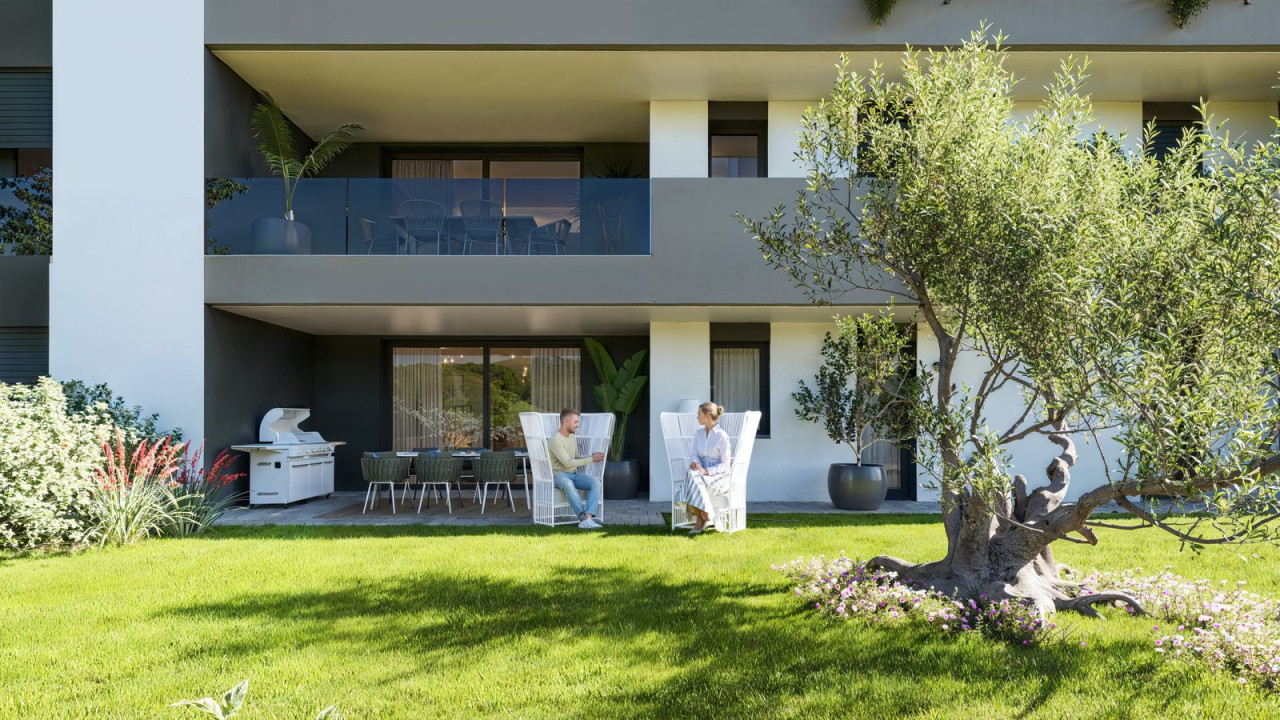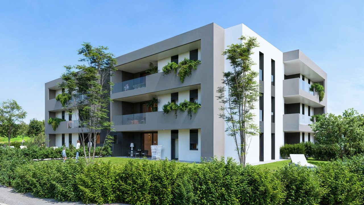 Appartamento 3 camere con giardino: Ingresso, zona giorno open space di circa 45 mq, 2 bagni, rip/lavanderia, tre camere. Ogni appartamento è dotato di un giardino privato, da un minimo di 220 mq ad un massimo di 400mq, a completare garage e posto auto esterno.