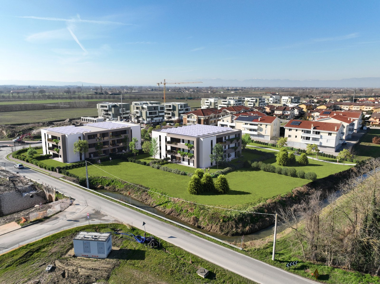 Appartamento 3 camere con terrazzo abitabile: Ingresso, zona giorno open space di circa 45 mq, 2 bagni, rip/lavanderia, tre camere. Ogni appartamento è dotato di un terrazzo abitabile di 30 mq, un garage singolo ed un posto auto esterno.