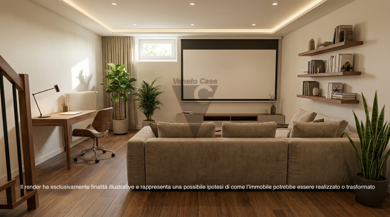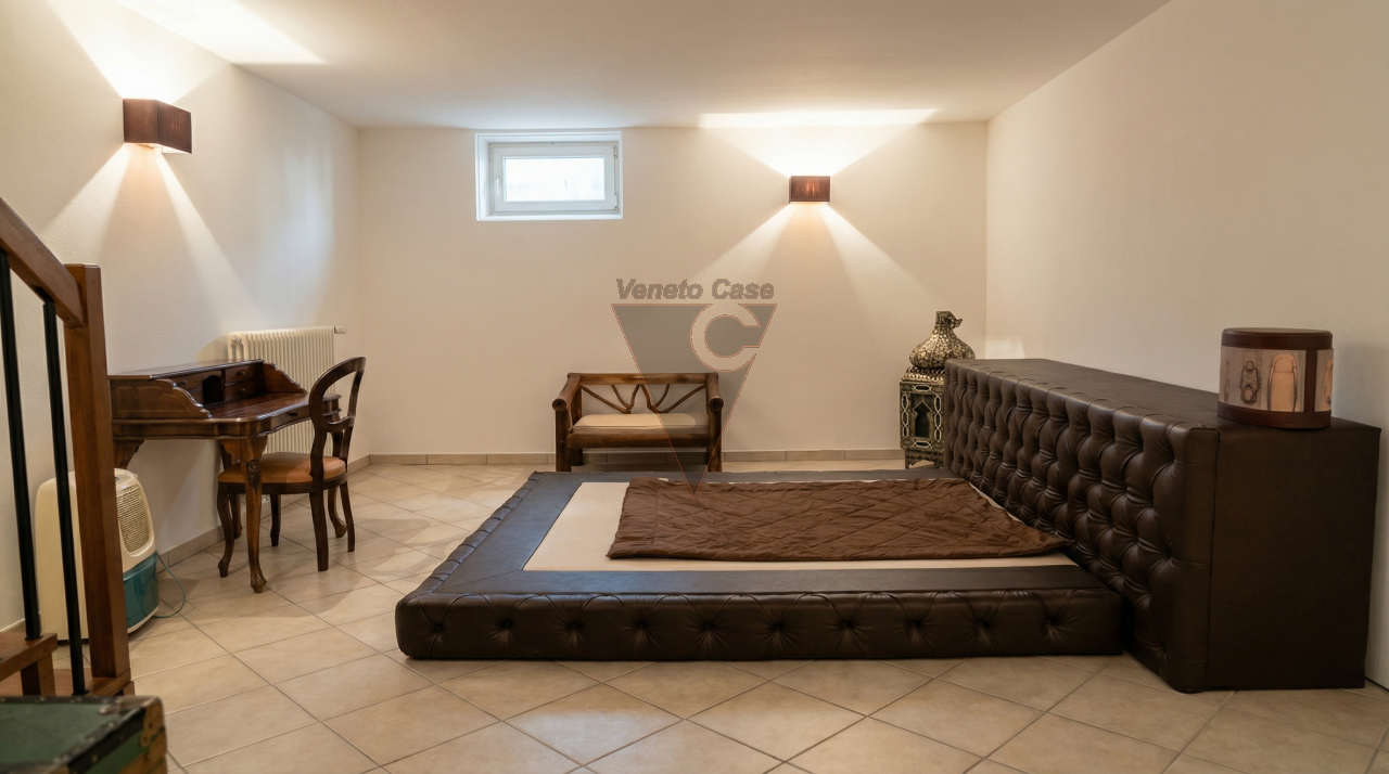 Dalla zona giorno accediamo al piano inferiore dove troviamo la taverna con ripostiglio, attualmente adibita come camera matrimoniale con cabina armadio e una ulteriore lavanderia.