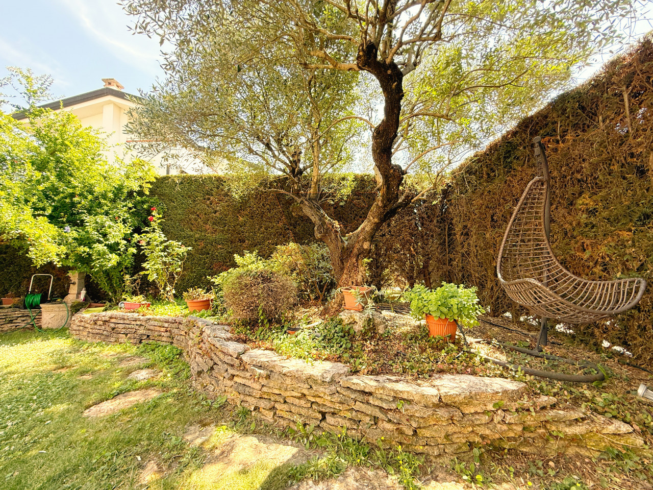 All’esterno, l’immobile vanta un giardino piantumato con impianto di irrigazione automatica, ideale per momenti di relax o convivialità all’aperto.