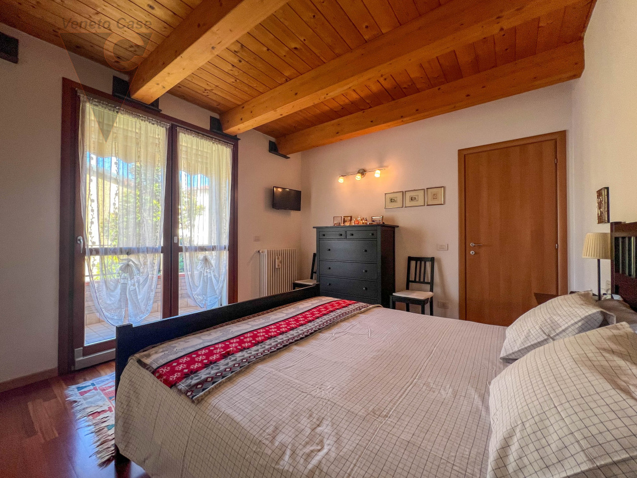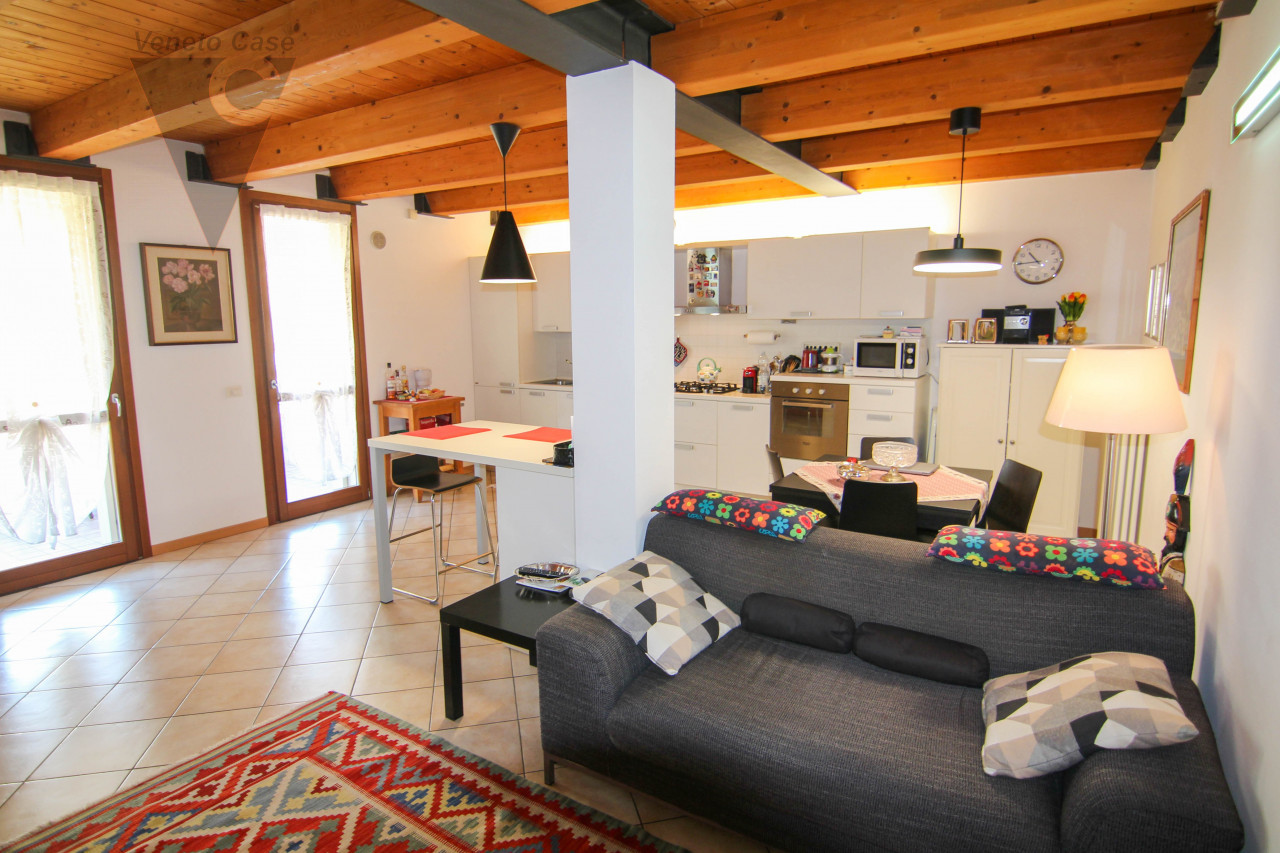 Proponiamo in vendita a Piove di Sacco un appartamento al primo piano situato in una tranquilla palazzina di sole cinque unità, priva di ascensore. La soluzione si presenta in ottime condizioni ed è caratterizzata da ambienti accoglienti e ben distribuiti. L’ingresso si apre su una luminosa zona giorno di circa 30 mq con cucina open-space, che affaccia direttamente su un terrazzo abitabile, perfetto per pranzi o momenti di relax all’aperto. La zona notte si compone di 1 camera matrimoniale con accesso al secondo terrazzo, 1 camera singola, 1 bagno finestrato con box doccia e un secondo bagno di servizio. L’appartamento è dotato di riscaldamento autonomo con radiatori in acciaio e caldaia installata nel 2009. Tra le finiture si segnalano il cappotto esterno, le travi a vista, le porte interne in legno di ciliegio e gli scuri in legno laccato bianco. Sono inoltre presenti tende da sole motorizzate e un impianto di climatizzazione nella zona notte, con predisposizione nella zona giorno. Completano la proprietà un garage di circa 23 mq, un posto auto esterno assegnato, cortile condominiale e accesso tramite strada privata regolata da sbarra automatizzata. Per ulteriori informazioni o per fissare un appuntamento per la visita, contattare l’agenzia. Ottima opportunità per chi cerca una soluzione comoda, ben rifinita e in un contesto riservato.