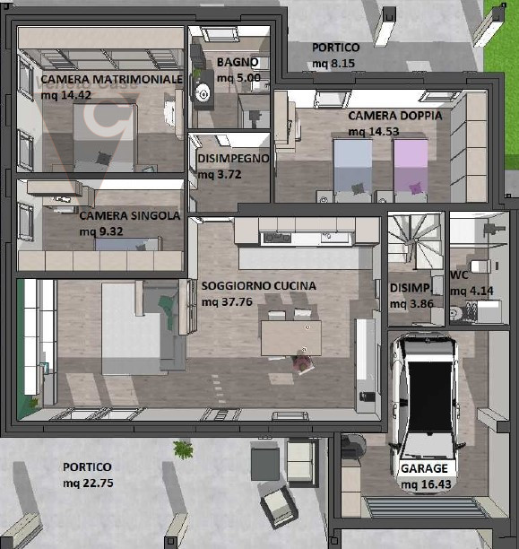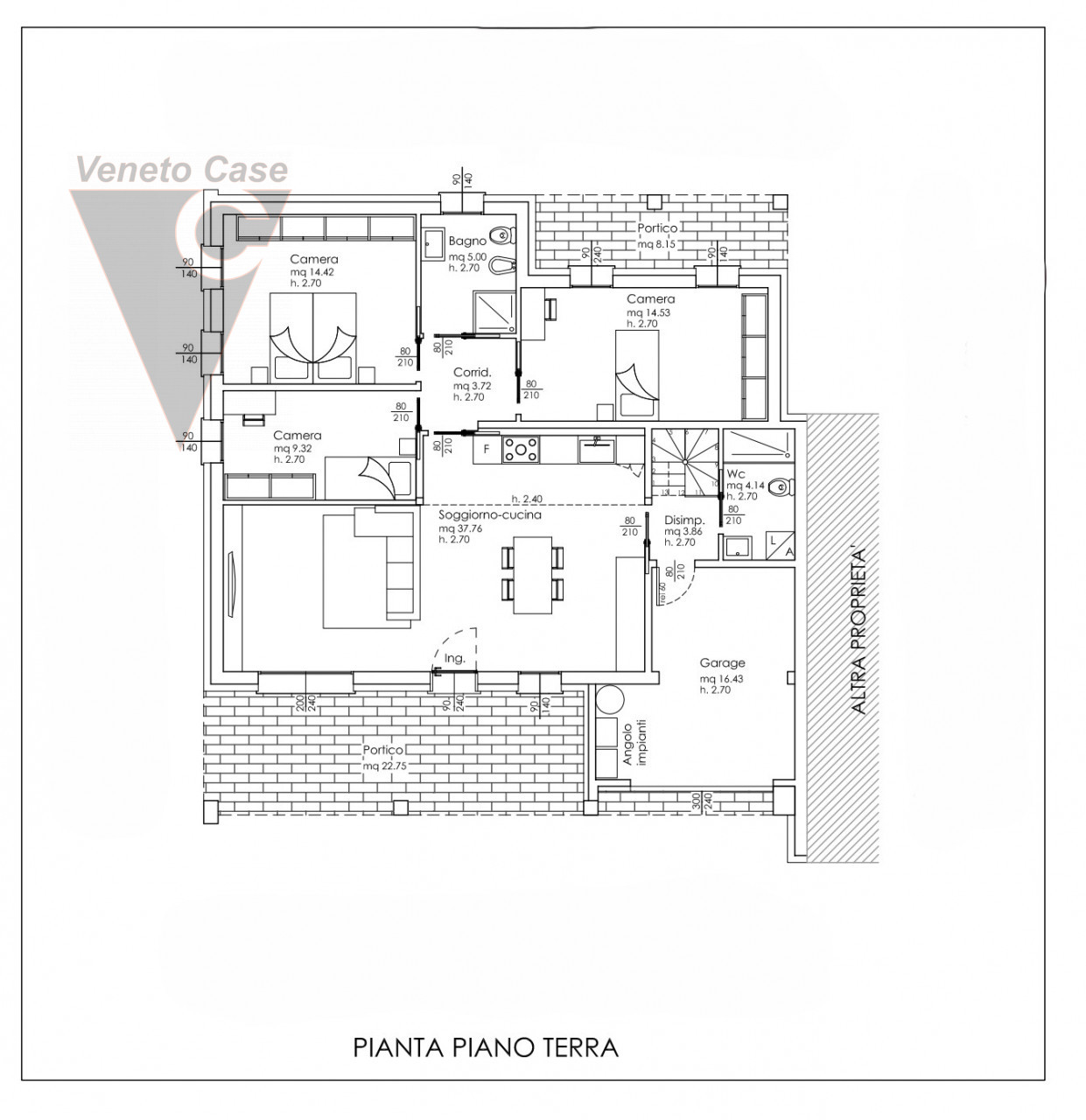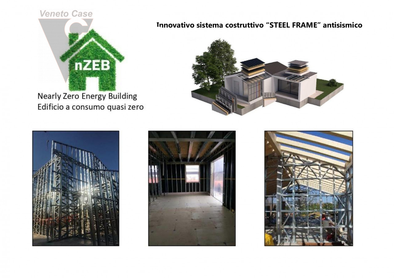 A Brugine, proponiamo in vendita porzione di bifamiliare posta al piano terra. La soluzione è composta da ingresso, 1 soggiorno, 1 cucina open-space di 40 mq con accesso sul portico di 25mq tramite un’ampia vetrata, 1 disimpegno, il garage di 17 mq e 1 disimpegno con un bagno cieco. Proseguendo troviamo 1 disimpegno notte, 2 luminose camere matrimoniali, 1 camera singola e 1 bagno finestrato. La soluzione che è stata realizzata con l’innovativo sistema di costruzione “Steel Frame” è antisismica e a “ZERO CONSUMI”, grazie alla classificazione energetica in A4 gode delle più moderne tecnologie come: riscaldamento a pavimento con pompa di calore, VMC per il ricambio dell’aria meccanico e controllo degli ambienti, impianto fotovoltaico da 6,00 Kw con predisposizione per le batterie d’accumulo, predisposizione allarme, wallbox per auto elettrica, cappotto esterno da 10 cm e lana di vetro, oscuri in alluminio coibentato verniciato, portoncino blindato, porte interne laccate bianche, finestre e portefinestre in PVC comprese di zanzariere. pavimenti e rivestimenti dei bagni in gres. 2 posti auto esterni. Possibilità di personalizzazione delle finiture interne da capitolato. Scoperto e giardino di proprietà di 550mq. Per qualsiasi informazione o per fissare un’eventuale visita non esitate a contattarci.