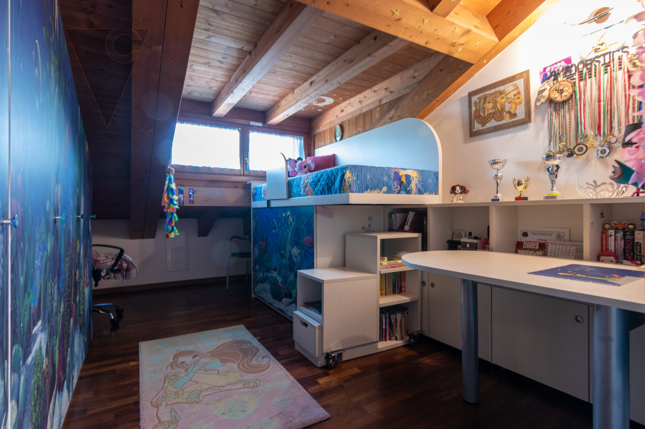 Salendo le scale e con un soffitto tutto travato, si accede alla zona notte dove troviamo 3 camere da letto, la padronale che vanta uno splendido terrazzo abitabile, 2 camere singole ed un ulteriore bagno finestrato con vasca da bagno.