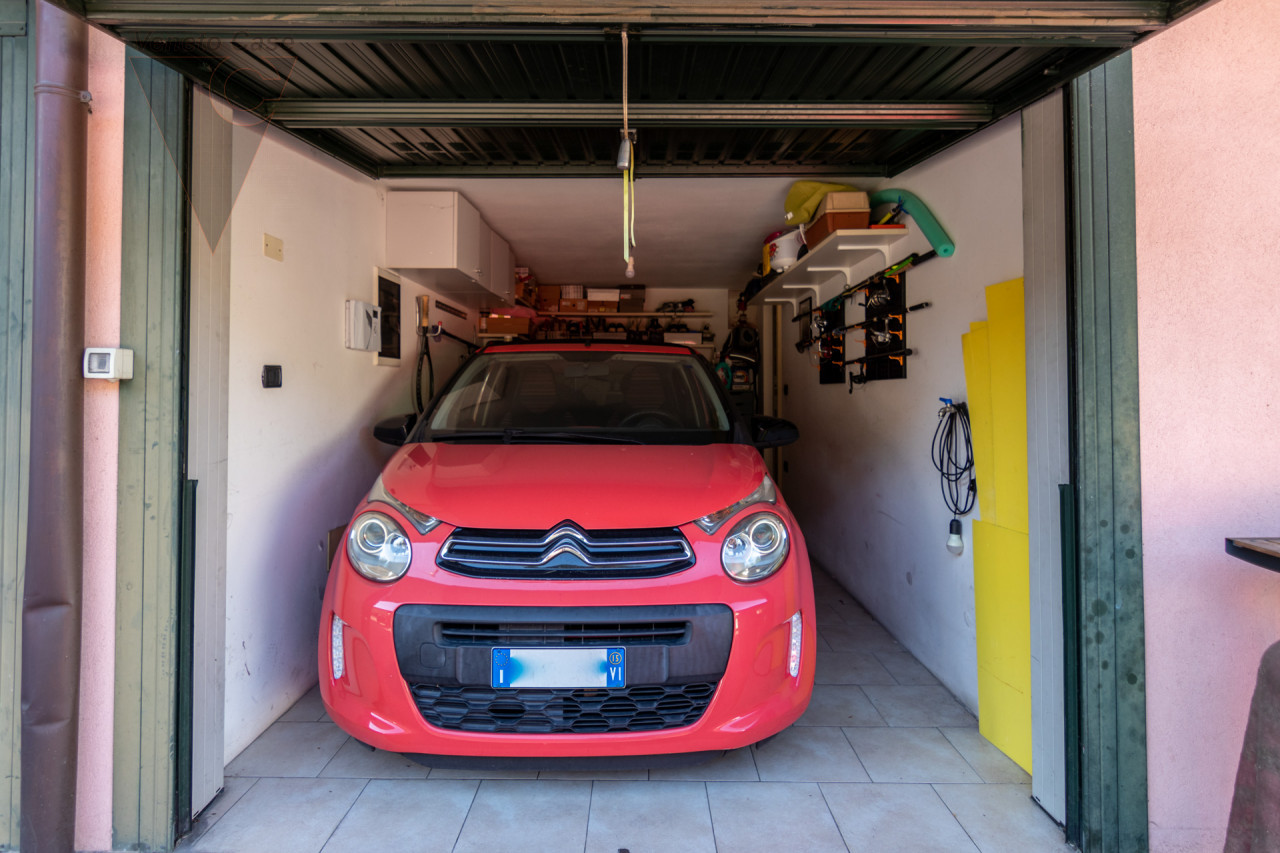 Dal pian terreno accediamo tramite una porta tagliafuoco al garage e al posto d’ auto di proprietà, spazi ideali per famiglie che dispongono di 2 autovetture.