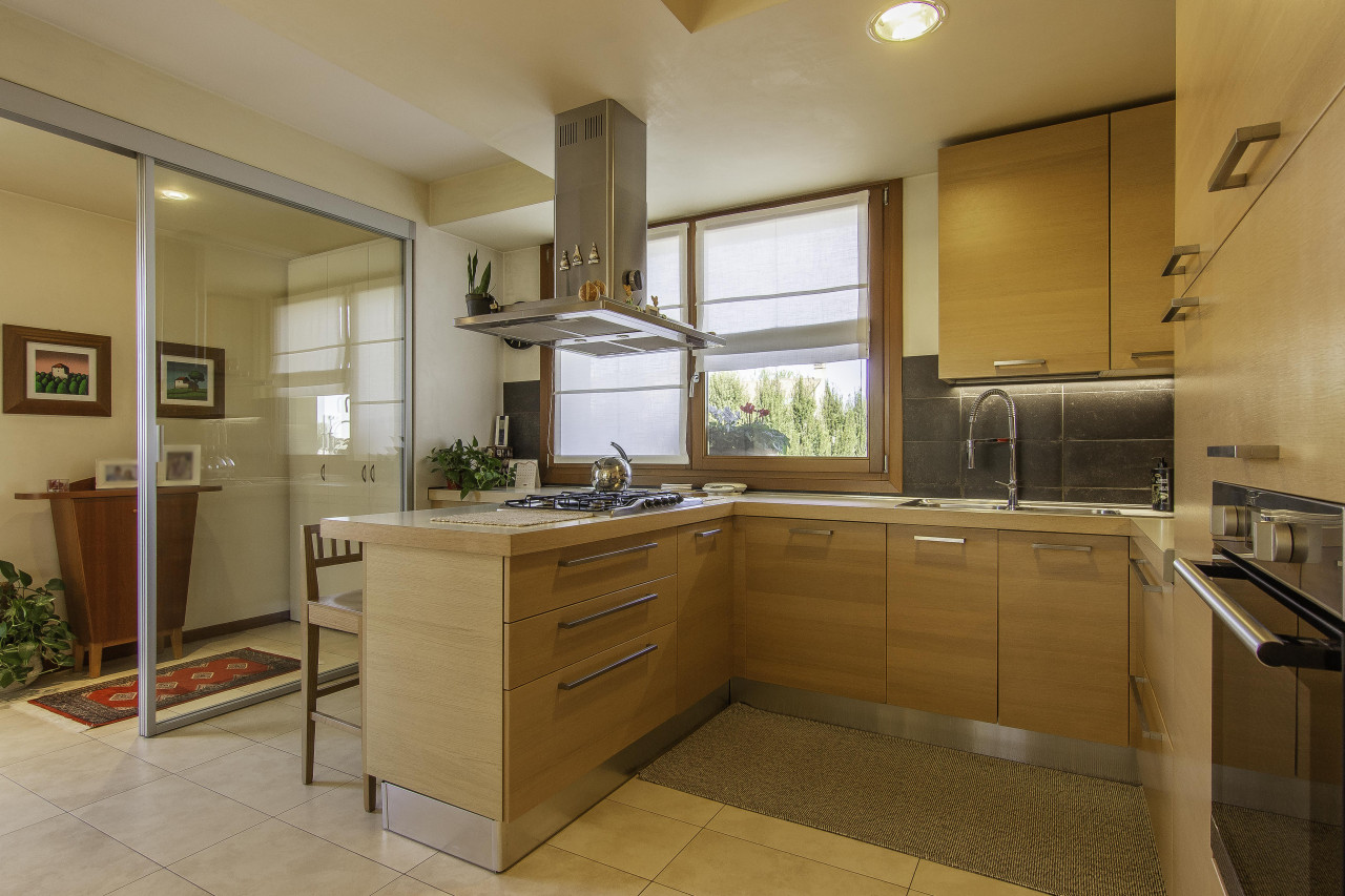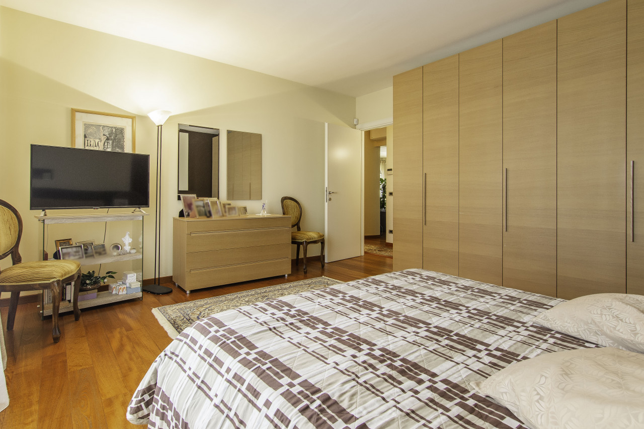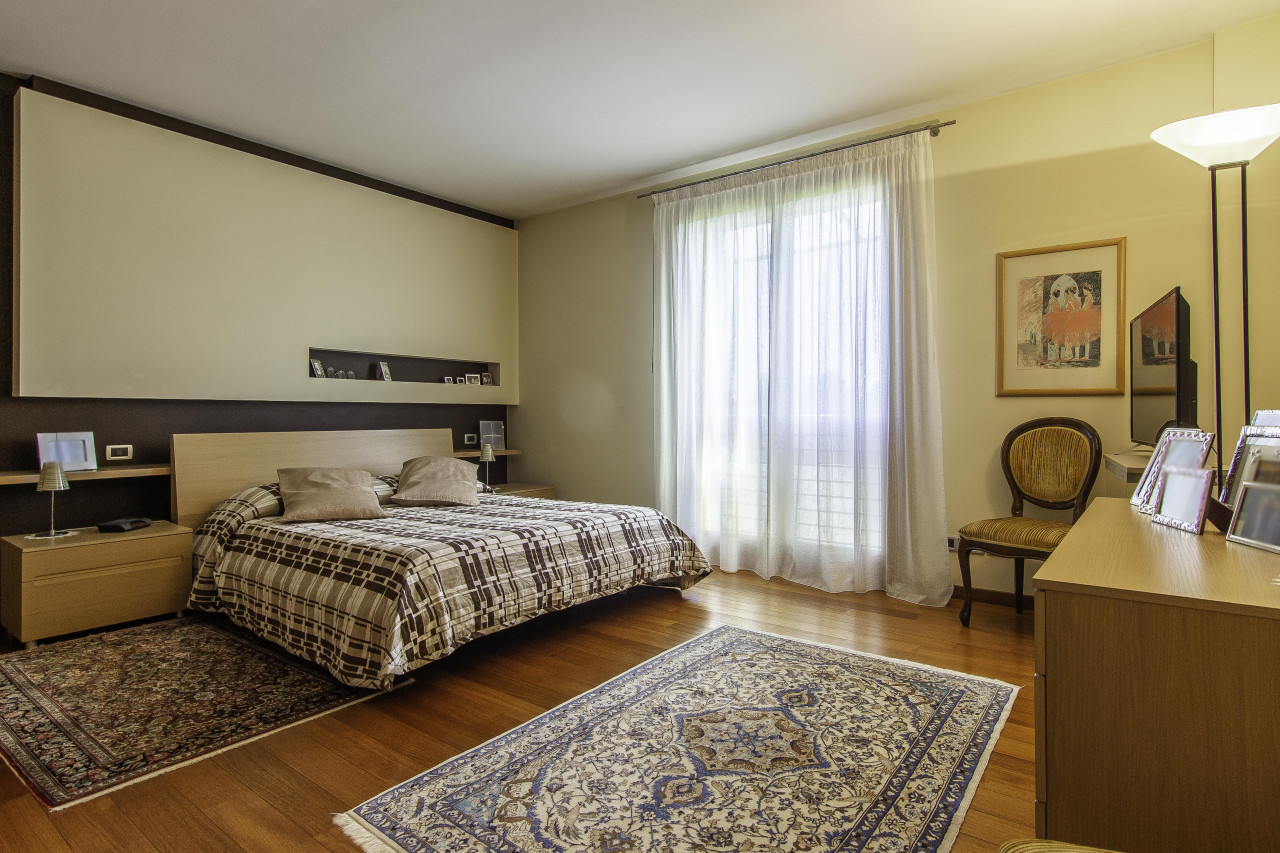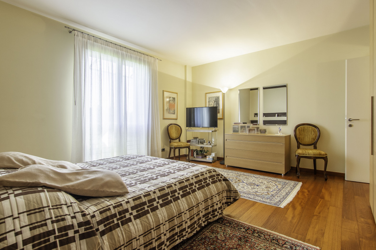 Finiture di pregio: pavimenti in legno e marmo naturale, porte interne laccate, serramenti in legno/alluminio ad alte prestazioni, illuminazione di design e dettagli artigianali di grande valore.